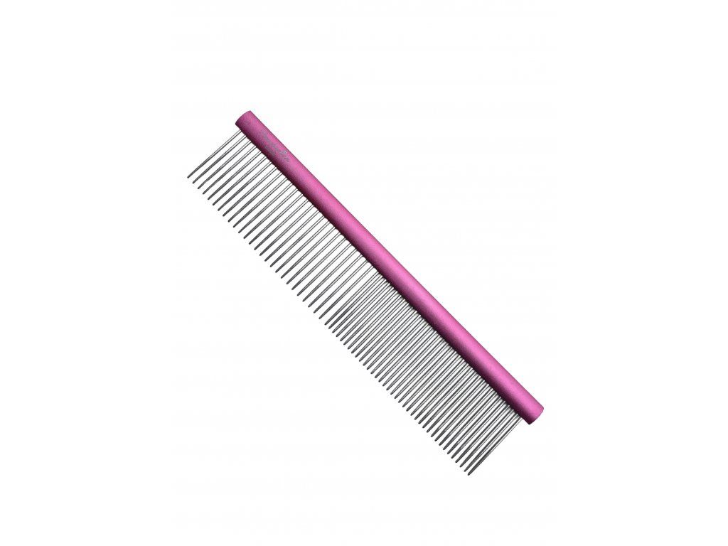 Hřeben není určený jako hlavní nástroj pro česání. Slouží jako doplněk ke kartáči – pro kontrolu srsti a detailní úpravu. Hřeben používejte po vyčesání kartáčem jako kontrolní krok. Jemně jím projeďte srst a zaměřte se na místa, kde se srst nejčastěji cuchá. Pro šetrnější práci doporučuji používat na navlhčenou srst nebo s kondicionérem.
